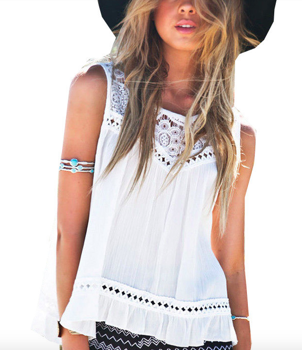 Śliczny biały letni TOP Vintage. Szerokie ramiączka, koronkowy karczek, ozdobna falbanka. Wysoka jakość wykonania.