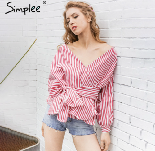 Elegancka wiązana bluzka koszulowa w pasy P473
