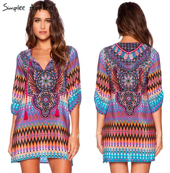 Śliczna tunika Simplee Apparel ETNO . Kolorowy etniczny wzorek, luźny fason, przewiewna tkanina.